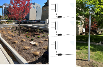 The Soil-SENSE Device is a computer module, battery module, and solar panel to measure soil moisture content and temperature in biofiltration systems. It uses cellular data transmission. A stainless steel mounting bracket suitable for mounting to existing poles is included. A stand-alone pole mount system is available (pricing below). The system uses Soil Sensors (pricing below).